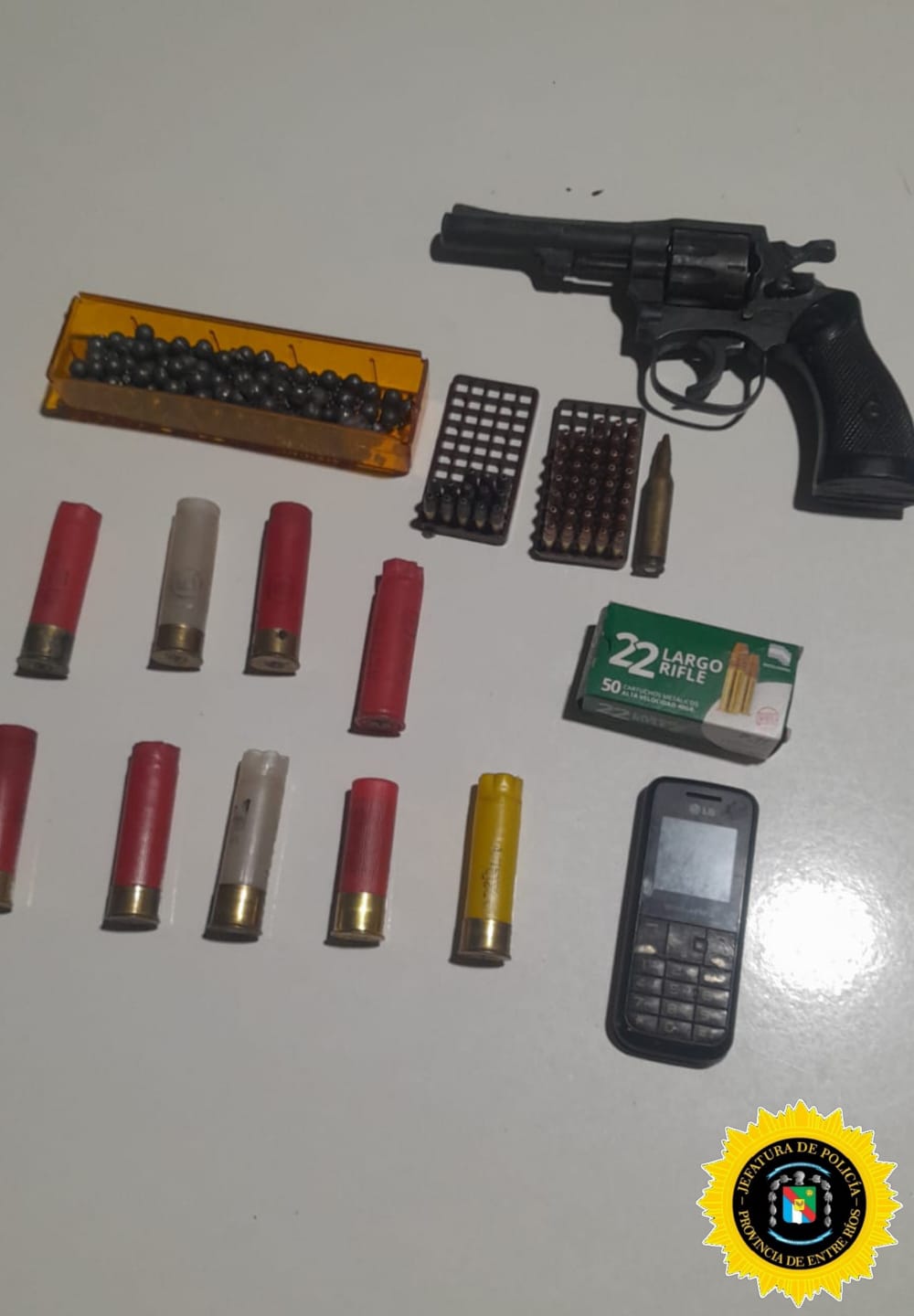 Los procedimientos arrojaron resultados positivos. En un establecimiento rural de Mojones Norte del departamento Villaguay se secuestró un revólver calibre .22 sin numeración visible, 51 cartuchos del mismo calibre, cartuchería de escopeta calibre 16, perdigones y un teléfono celular.