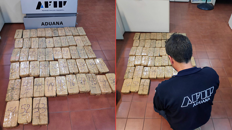 La Aduana evitó el contrabando en los pasos fronterizos Concordia-Salto y Posadas-Encarnación de 103,4 kilos de cocaína. Según se informó, la droga estaba oculta en los ejes de dos camiones de la misma empresa de transporte paraguaya que transportaban maíz a granel con destino final al puerto de Montevideo. Se indicó, además, que se utilizaron los canes antinarcóticos y scanners para la detección de los estupefacientes.
