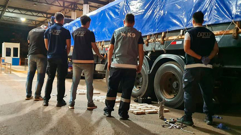 El procedimiento contó con la colaboración activa de Gendarmería acompañando en las tareas de inteligencia y escoltando otros camiones de la misma empresa que circulaban en la ruta para hacer los controles en la zona primaria aduanera.
