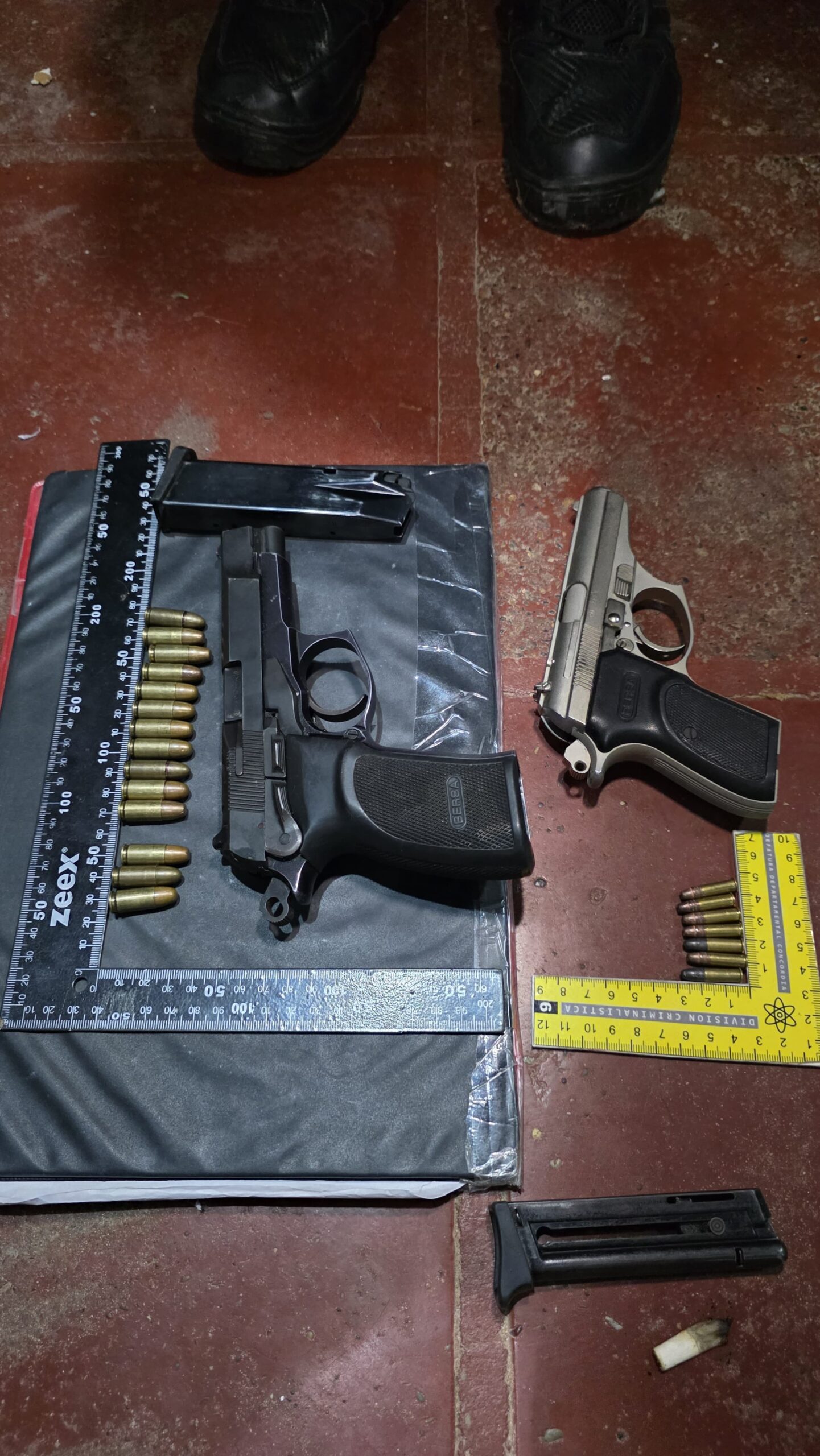 Entre los elementos incautados se encuentran una pistola marca Bersa modelo Thunder calibre 9 milímetros con cargador, la cual registraba pedido de secuestro vigente en la provincia de Buenos Aires; otra pistola Bersa Thunder calibre .22 con cargador; doce cartuchos calibre .22 largo; dieciséis cartuchos calibre 9 milímetros; 1,8 gramos de marihuana; y una motocicleta Honda CG Titan 150 c.c.