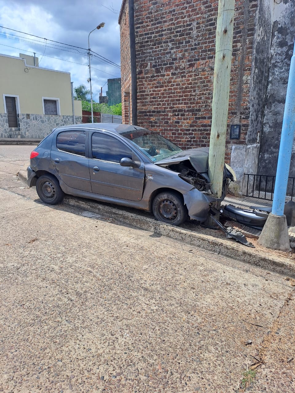 Por causas que se tratan de establecer, un automóvil Peugeot 207, color gris, que circulaba por calle Tucumán en sentido oeste–este, terminó colisionando contra un poste de tendido eléctrico.