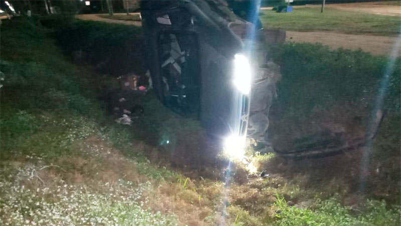 El accidente ocurrió en la madrugada de este domingo en la ciudad de Chajarí. El conductor del auto aseguró que pasó un lomo de burro, perdió el control, despistó y terminó en la alcantarilla.
