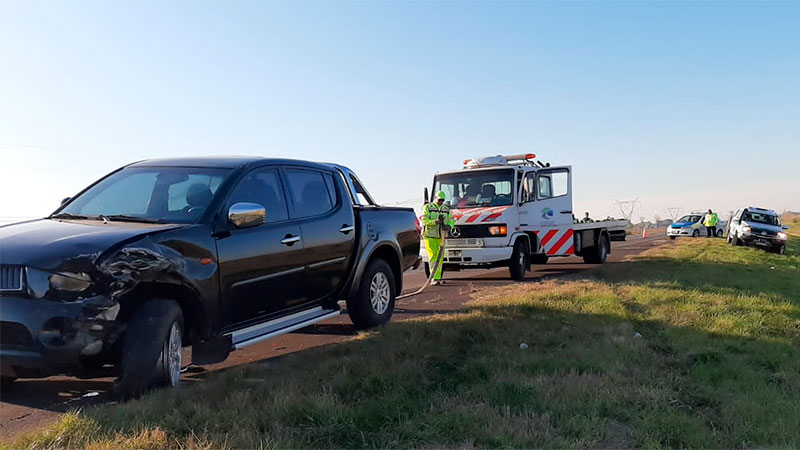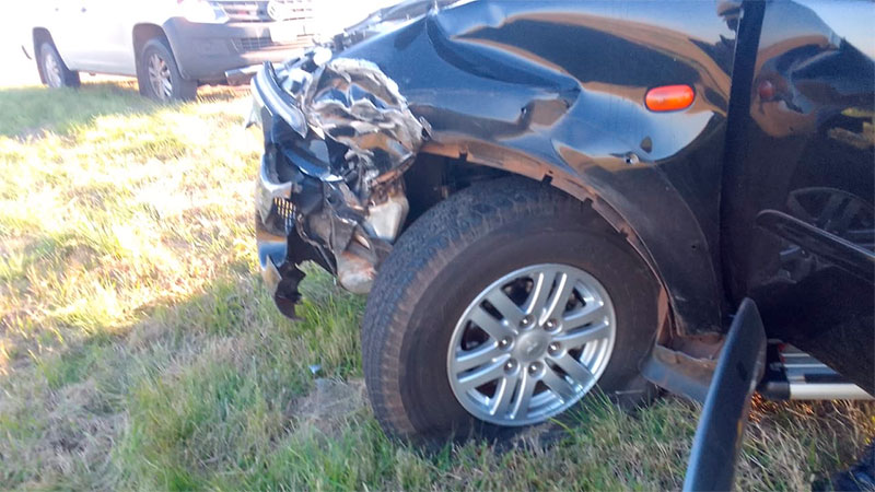 Un accidente de tránsito ocurrió en la tarde de domingo, en la autovía 14 a la altura del kilómetro 19. El siniestro vial estuvo protagonizado por una camioneta, Mitsubishi modelo L200, de color negro y un automóvil Audio, de color negro.