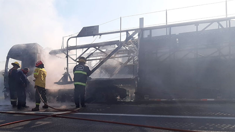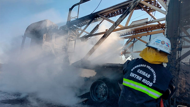 El siniestro vial ocurrió sobre la autovía 14. El conductor de una camioneta no advirtió que la circulación era reducida, por el incendio de un camión, y chocó con un auto que estaba detenido.