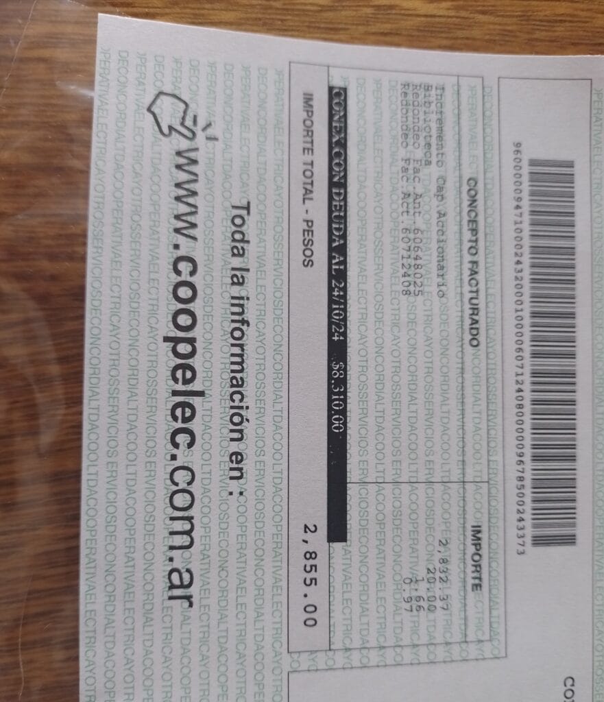 La Cooperativa Eléctrica adecuó los números se barra de la Factura, pero los Rapipagos no han realizado los cambios para cobrarla