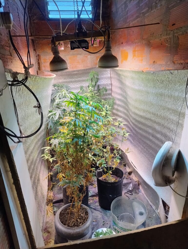 Tres personas detenidas: Encontraron invernadero de plantas de marihuana, armas, municiones