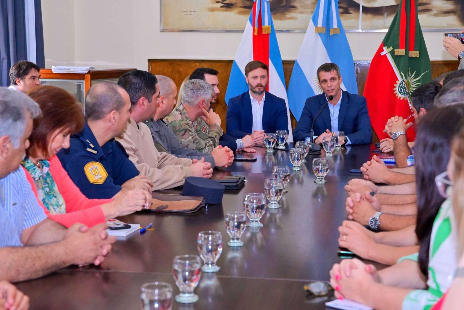 Concordia Cresto y Azcué acordaron ejes para la transición y presidieron juntos la reunión de Defensa Civil por la creciente del río