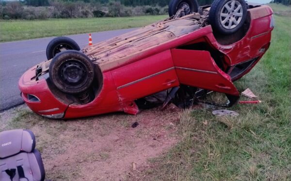 Circulaba de Norte A Sur por la autovía “José Gervasio Artigas”, volcó esta mañana en la rotonda de acceso a Chajarí.
