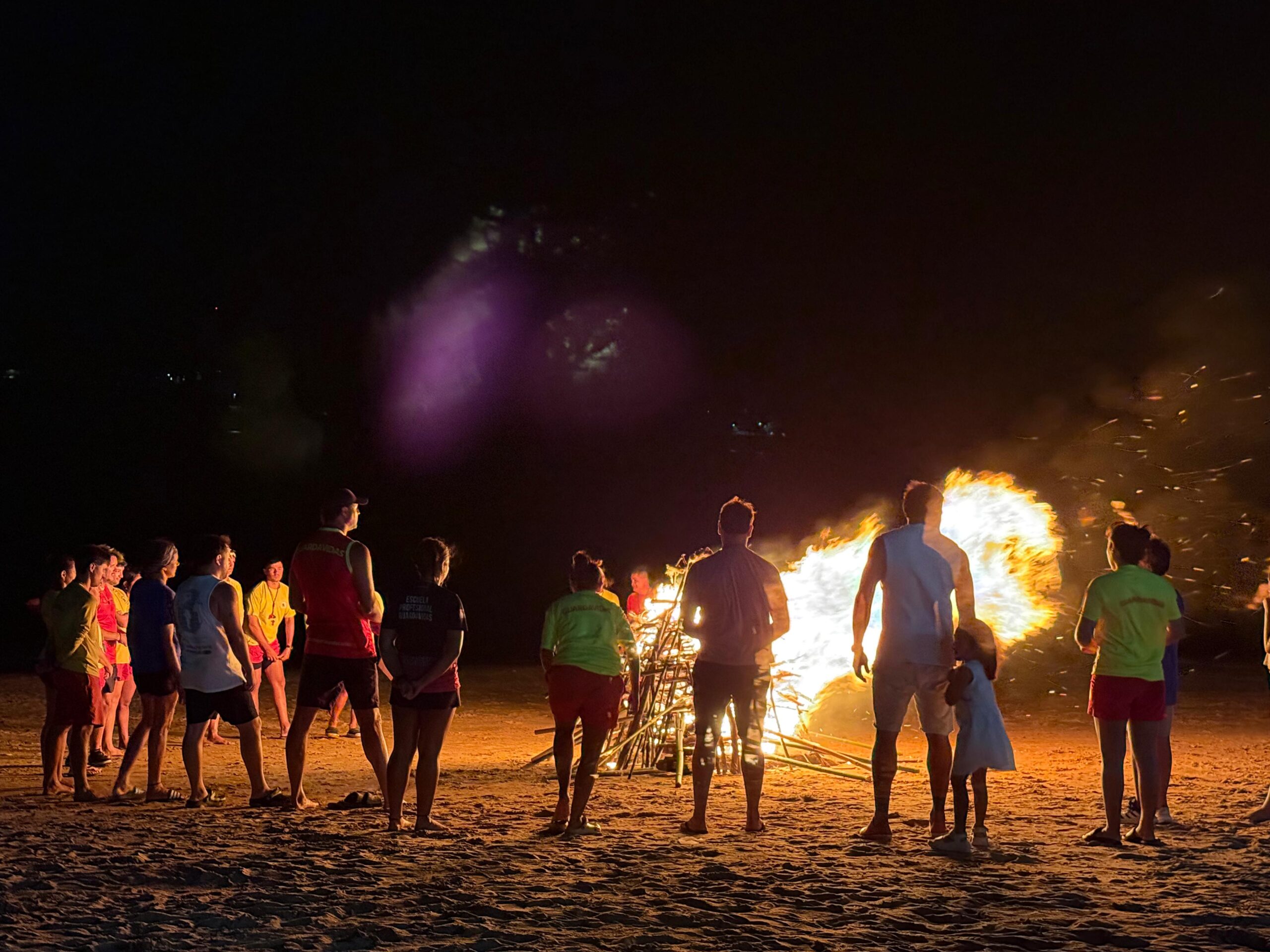 El evento, que se ha convertido en una costumbre en cada temporada, contó con la participación activa del cuerpo de guardavidas, quienes realizaron el encendido de antorchas sobre la arena, generando una postal única frente al río.