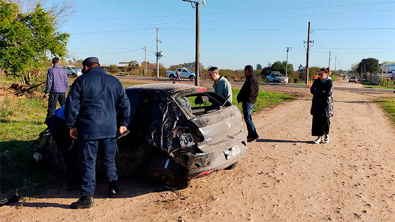 El conductor de un automóvil marca Volkswagen Gol, color negro, despistó y volcó, terminando su marcha luego de chocar contra varios árboles.