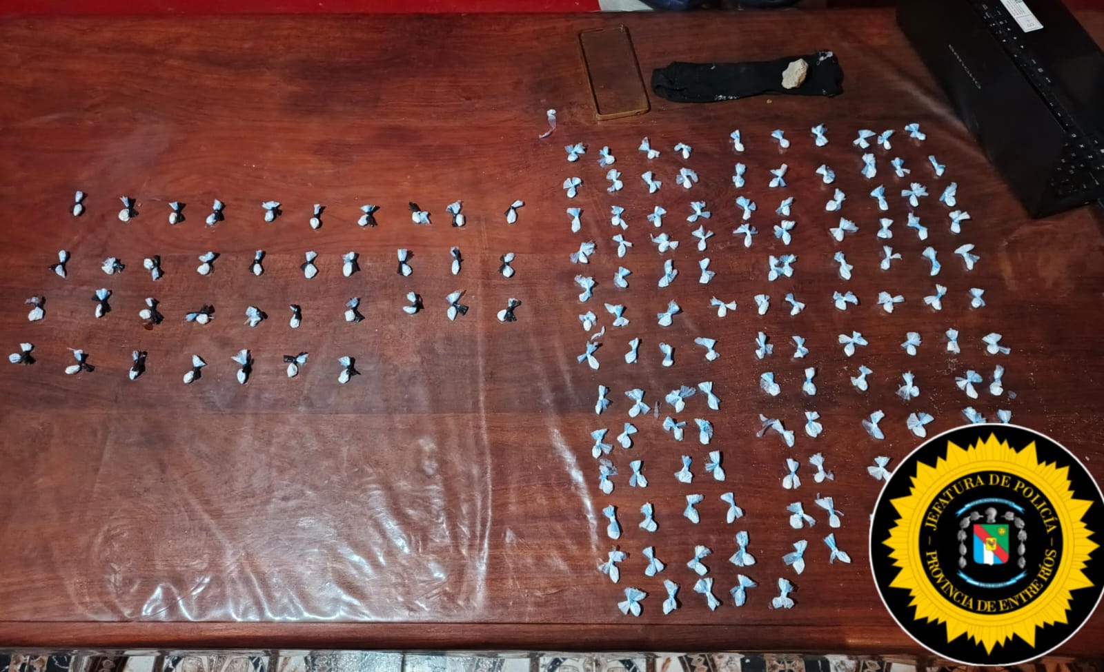 Como resultado de los operativos, los efectivos secuestraron 164 envoltorios con cocaína, nueve envoltorios de marihuana, dinero en efectivo, teléfonos celulares, un DVR y distintos elementos utilizados para el corte y fraccionamiento de estupefacientes.