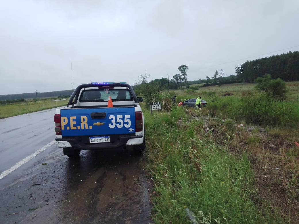 En el lugar se constató que un automóvil Honda Civic gris, conducido por un hombre de 42 años, quien viajaba desde Merlo (Buenos Aires) con destino a Paraguay, se desplazaba en sentido Sur–Norte cuando, debido a las inclemencias climáticas y presencia de espejo de agua sobre la calzada, perdió el control del rodado, despistando y finalizando en la banquina.