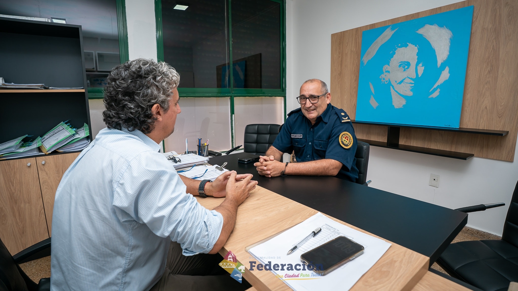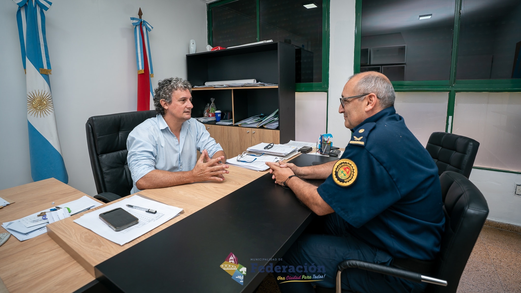 El intendente de la ciudad de Federación, Ricardo Bravo, recibió en la mañana de este martes en su despacho al flamante jefe de la Jefatura Departamental de Policía, comisario inspector Luis Cristian Valdez Puente, con quien mantuvo una reunión de trabajo que fue calificada como muy positiva.