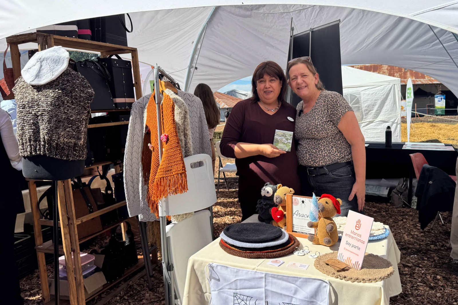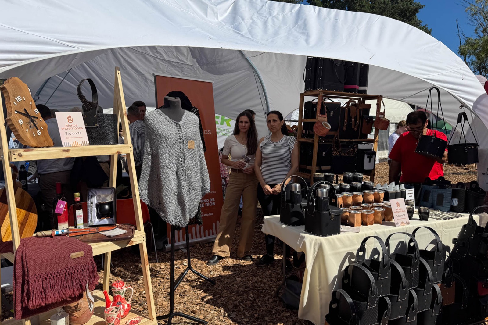 En esta edición, el stand contó con la participación de emprendimientos de distintas localidades. Nora Ahumada, de Paraná, presentó El Gurí Artesanías, con una propuesta de mates, mochilas materas y portatermos; mientras que Silvia Roble, de Cerrito, participó con A Mano, emprendimiento orientado a la producción de tejidos. A través de sus creaciones, acercaron al público el resultado de sus oficios y el valor del trabajo que se desarrolla en la provincia.