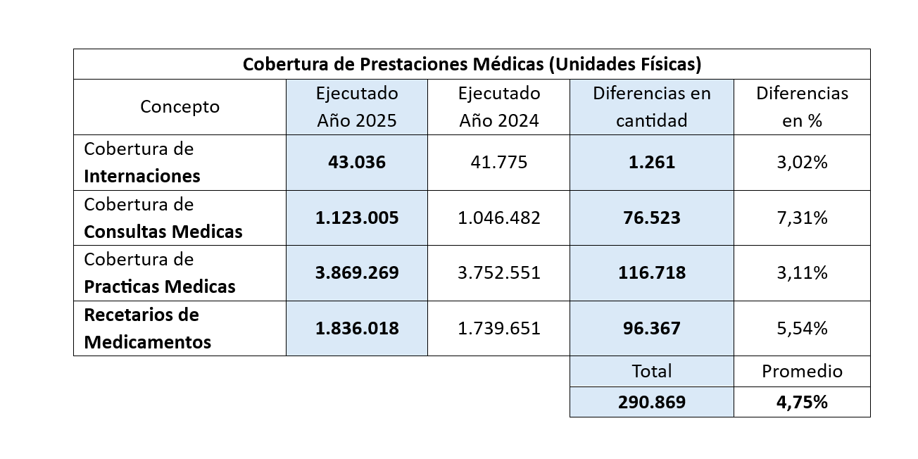 En términos agregados, el conjunto de estas prestaciones representa 290.869 coberturas adicionales brindadas a afiliados durante 2025 en comparación con el año anterior.