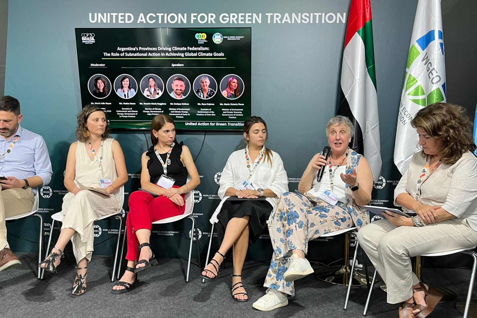 Dentro de las actividades, se destacó el panel titulado Federalismo Climático: Provincias argentinas en acción, realizado en el pabellón de World Green Economy Organization (WGEO), dentro del área oficial de la COP30. El panel fue uno de los espacios más relevantes del día y permitió visibilizar el trabajo conjunto que las provincias argentinas vienen realizando en materia de mitigación, adaptación y transición justa.