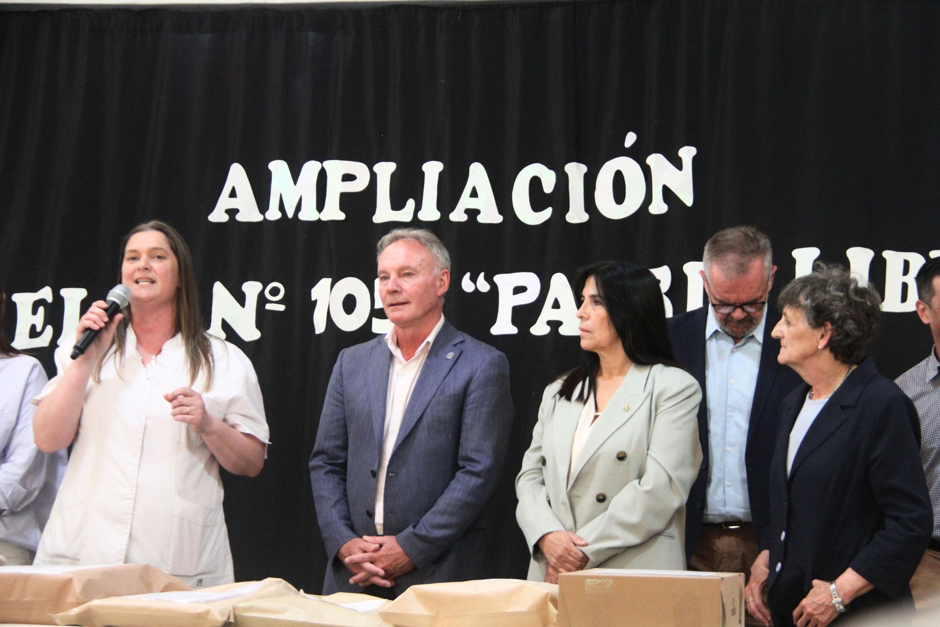 Acompañaron además la directora departamental de Escuelas de Paraná, Silvia Faure; la directora de la Escuela Nº 105, Paola Gelroth; la comunidad educativa e integrantes de la cooperadora del establecimiento. Por el Ministerio de Planeamiento, Infraestructura y Servicios asistieron el coordinador general, Hernán Jacob; el secretario de Transporte, Juan Diego Elsesser; la directora de Arquitectura, Claudia Benavento; y el director de Intendencia y Servicios, Eduardo Bianni.