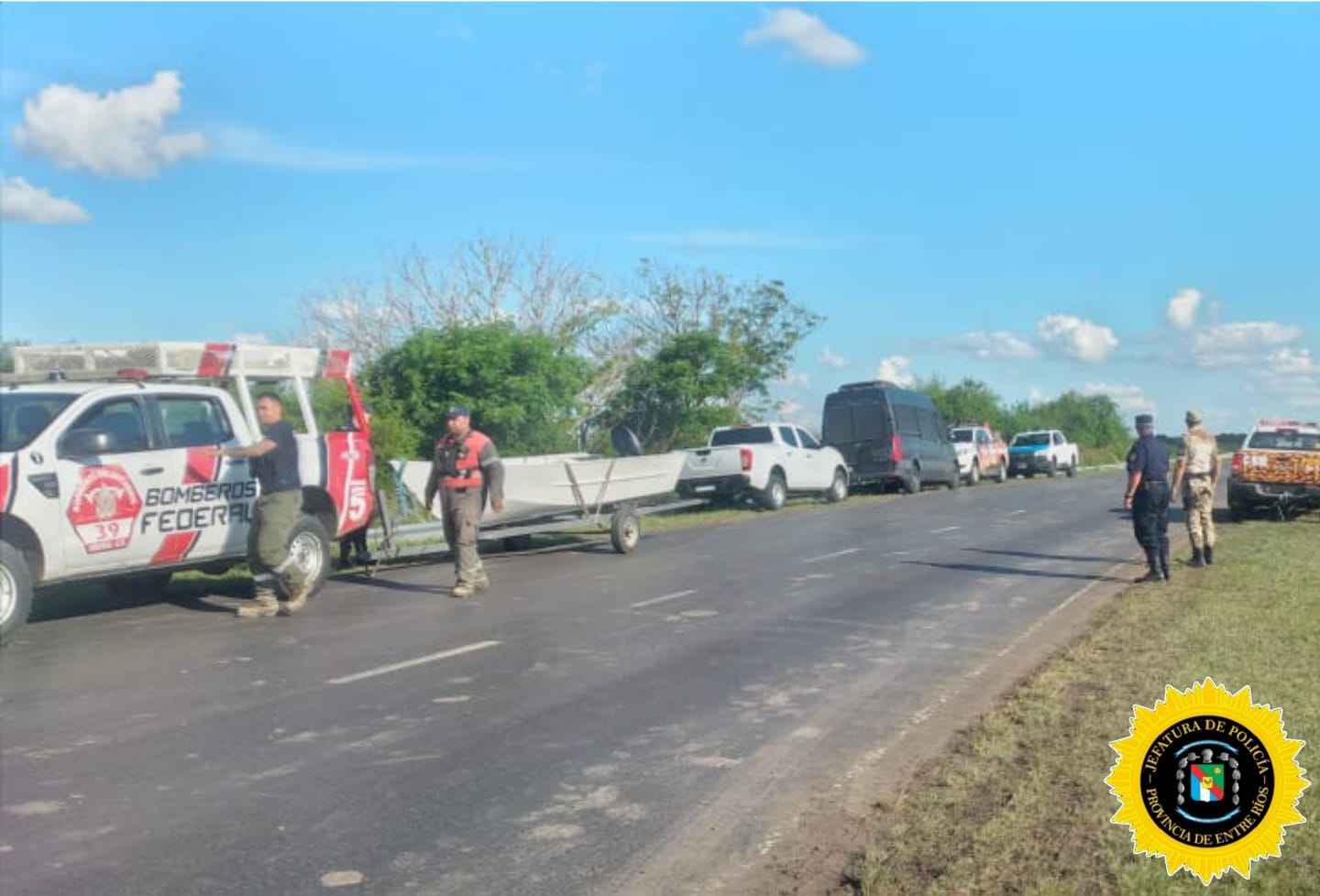 Desde el inicio de las tareas de búsqueda y rescate trabajaron de manera coordinada efectivos de la Comisaría Chañar y del Cuerpo y Guardia de la Jefatura Departamental, con el apoyo de Buzos Tácticos de la División Compañía de Operaciones Especiales de la Policía de Entre Ríos, personal de la División Bomberos Forestales y Emergencia Ambiental de la Dirección General de Prevención de Delitos Rurales, y el valioso acompañamiento del Cuerpo de Bomberos Voluntarios de Federal y una dotación de Buzos Tácticos de Bomberos Voluntarios de Chajarí.