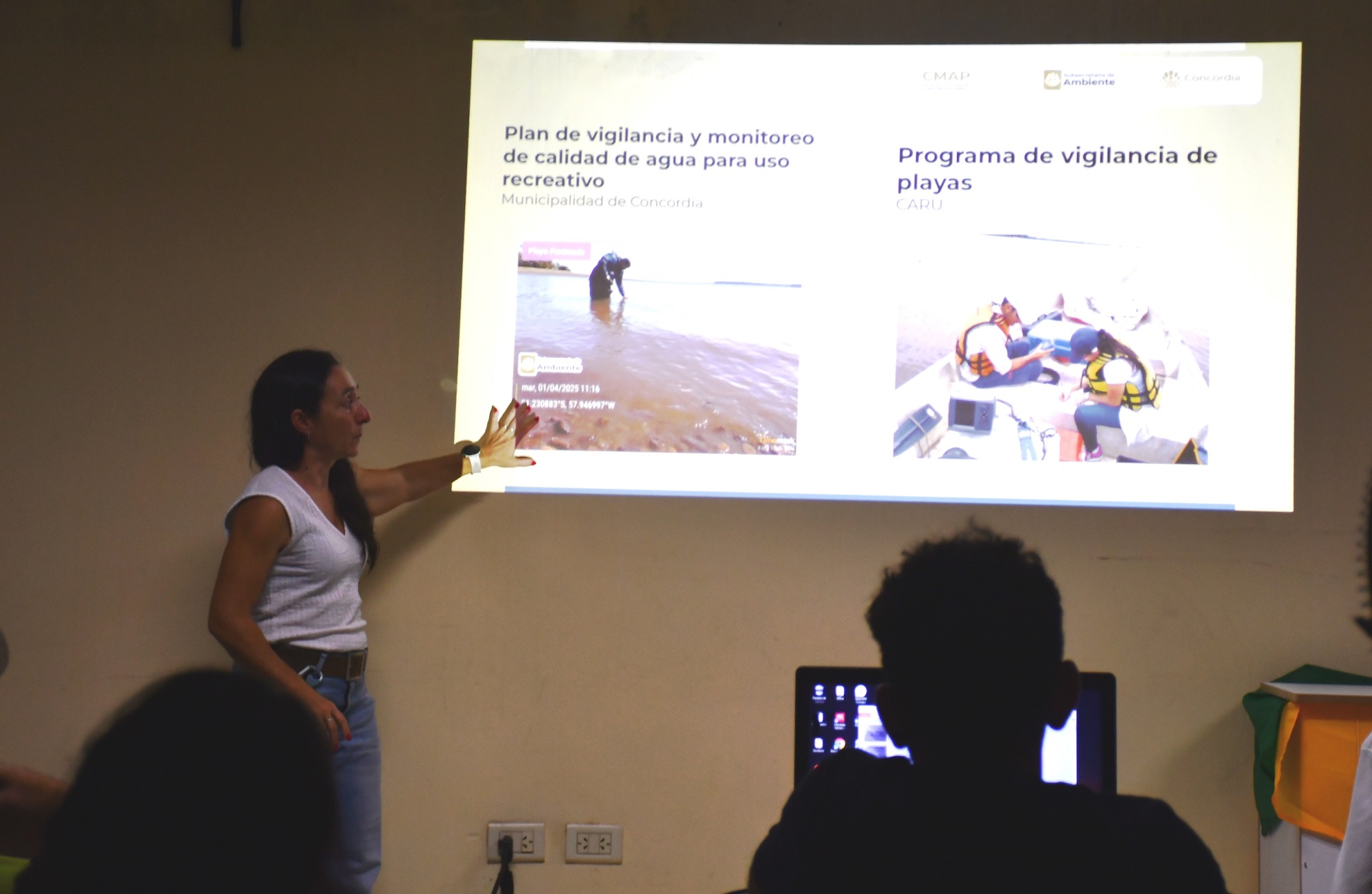 Al respecto, la Ing. Paola Sinner, del Departamento Técnico de la subsecretaría de Ambiente, sostuvo que “hablamos sobre las medidas preventivas en la calidad del agua de uso recreativo como playas, ríos y piletas. Todo ello en relación a las floraciones algales, las bacterias y microorganismos que se encuentran en el río y sus niveles. Cabe remarcar que nos basamos en normativas y resoluciones provinciales para realizar el plan de monitoreo y vigilancia de las playas”.