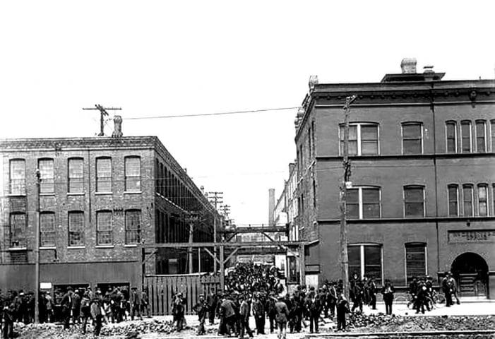 En 1886 una rebelión obrera paró las fábricas de la ciudad de Chicago (EE.UU) y ganó las calles en reclamo de la Jornada Laboral de Ocho Horas.-