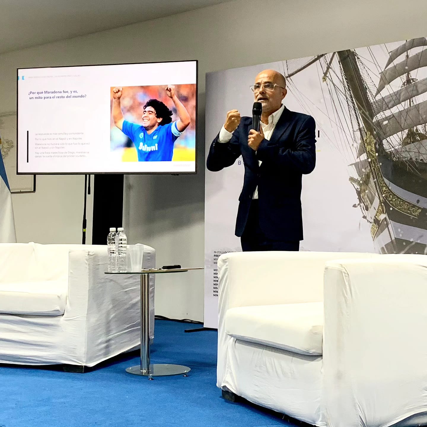 Durante 34 años y 11 meses Maradona como protagonista y Arcucci como interlocutor fueron forjando su vínculo: “Que me etiqueten como el narrador de Maradona me da mucho orgullo. Que me etiqueten o me designen como el biógrafo, también. Que me digan que soy el periodista que más lo conoce, en el sentido de conocer un montón de datos, digo que es mentira. Para mí, ser el biógrafo de Maradona es una forma de eternidad. Es un privilegio”. Es el mismo privilegio que tendrán todos los que asistan a la charla que el periodista brindará para la comunidad, sobre lo que significa tener que contar a Maradona.