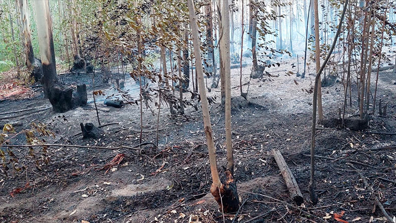 Este martes, alrededor de las 12.50, personal del cuartel de Bomberos Voluntarios de Villa del Rosario acudió a este incendio de gran magnitud que tuvo lugar en una plantación de eucaliptos ubicada en Colonia San Miguel, en cercanías de la Escuela N° 45.