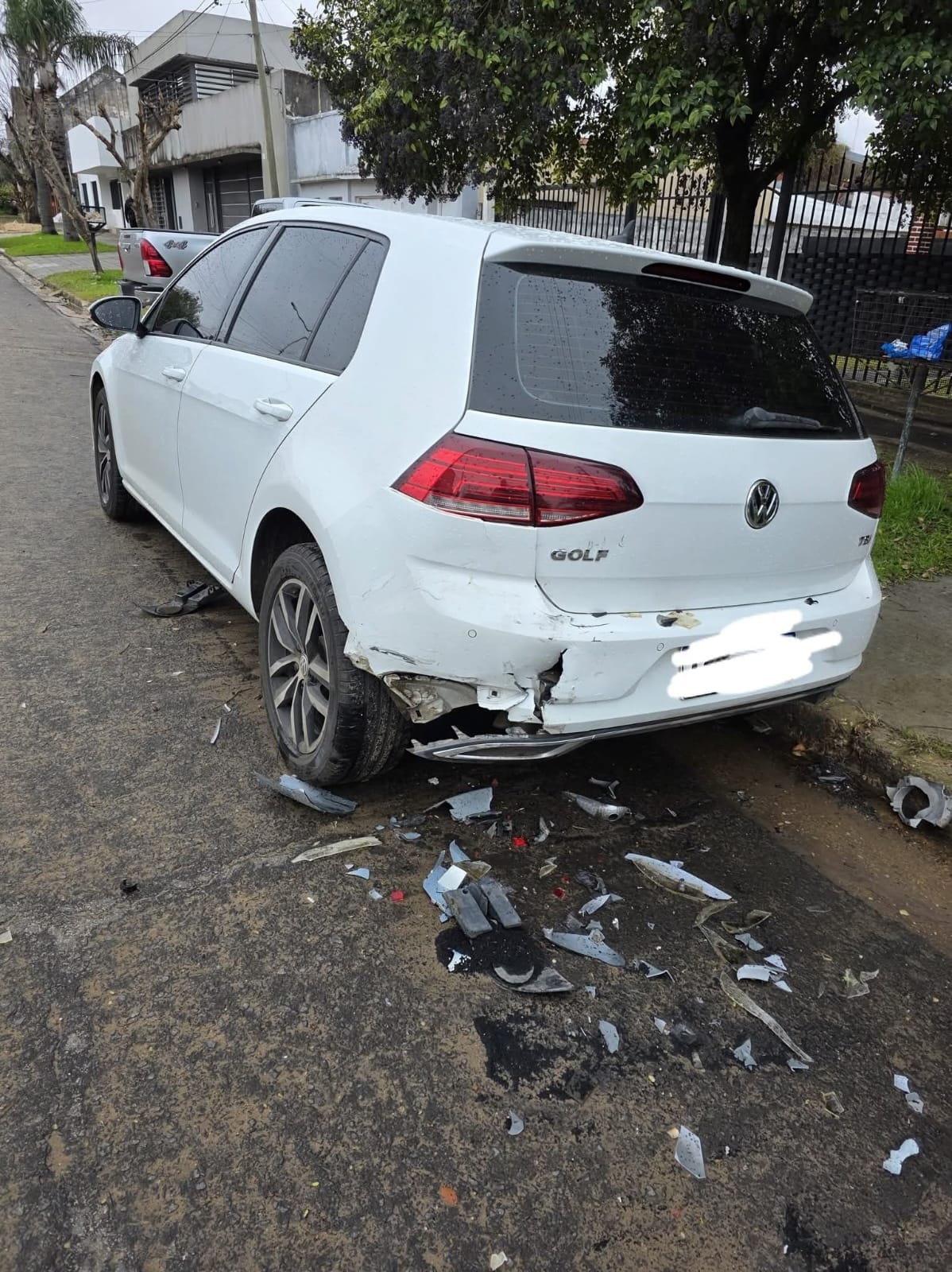 El damnificado, identificado en Facebook como Kaku Miño, compartió imágenes del daño ocasionado a su vehículo, un Volkswagen Golf blanco, que sufrió graves destrozos en el paragolpes y la parte trasera izquierda, con restos de piezas y vidrios esparcidos en el asfalto.