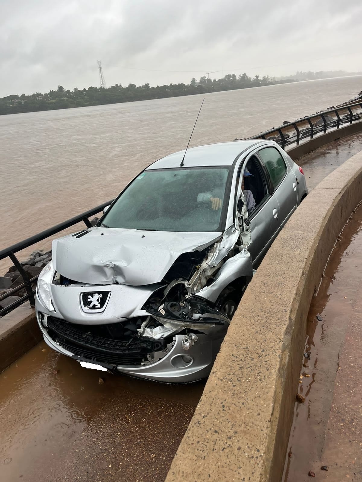 Una vez llegados al lugar los Efectivos pudieron observar un vehículo marca Peugeot 207 de color gris que prácticamente estaba incrustado entre la baranda y el muro allí construido.