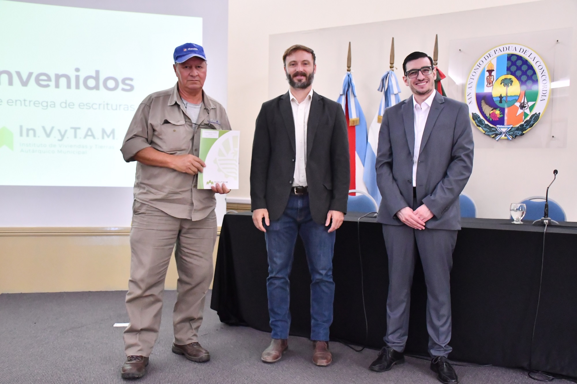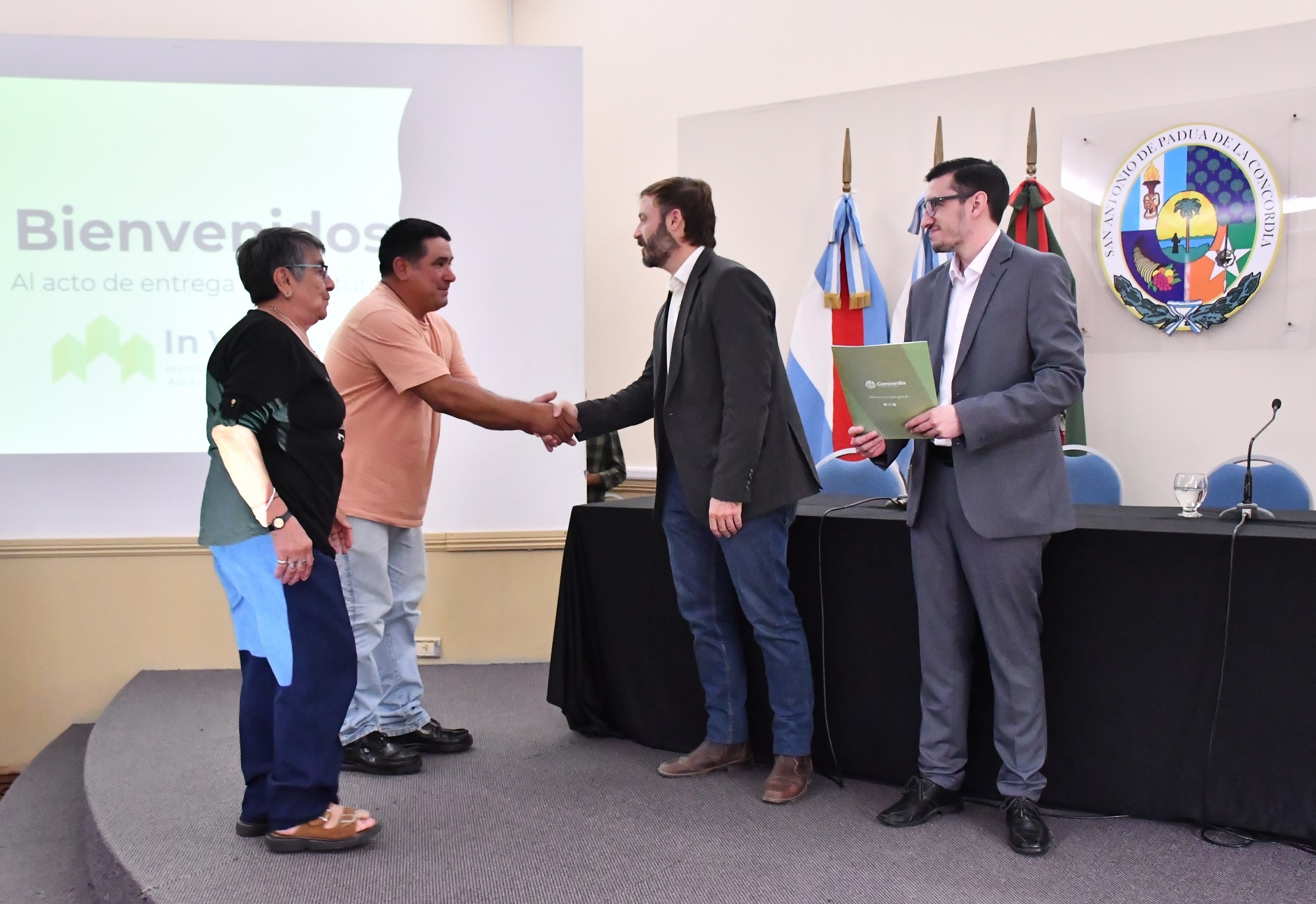 El Instituto de Viviendas y Tierras Autárquico Municipal (INVYTAM) de la Municipalidad de Concordia llevó adelante una nueva entrega de Escrituras Traslativas de Dominio a vecinos de distintos barrios de la ciudad.