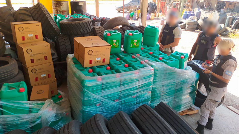 Además, durante los allanamientos, se incautaron máquinas para contar dinero, más de 30 equipos de telefonía móvil, notebooks, cámaras de neumáticos, 31.500 litros de aceite para motores, dispositivos de almacenamiento digital y documentación de interés para la causa.