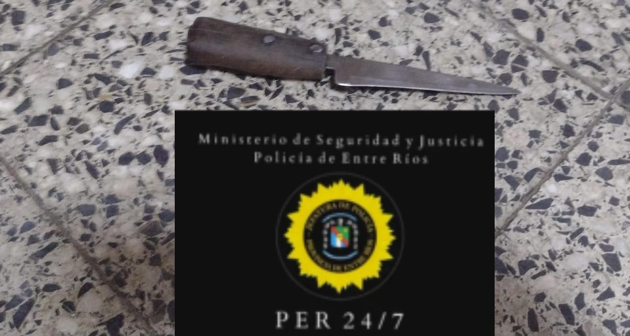 En horas de la tarde de Sábado, Personal Policial de Sección Comando Radioeléctrico acude a inmediaciones de calles Urquiza y Buenos Aires, luego de recibir llamados al 101 informando amenazas de parte de una femenina a transeúntes del lugar, más precisamente en la zona de cajeros automáticos, al hacerse presentes, se acercan, y la misma comienza a agredir a los Funcionarios Policiales, al realizarle un palpado superficial por Personal femenino, tendría entre sus prendas un cuchillo con mango de madera.