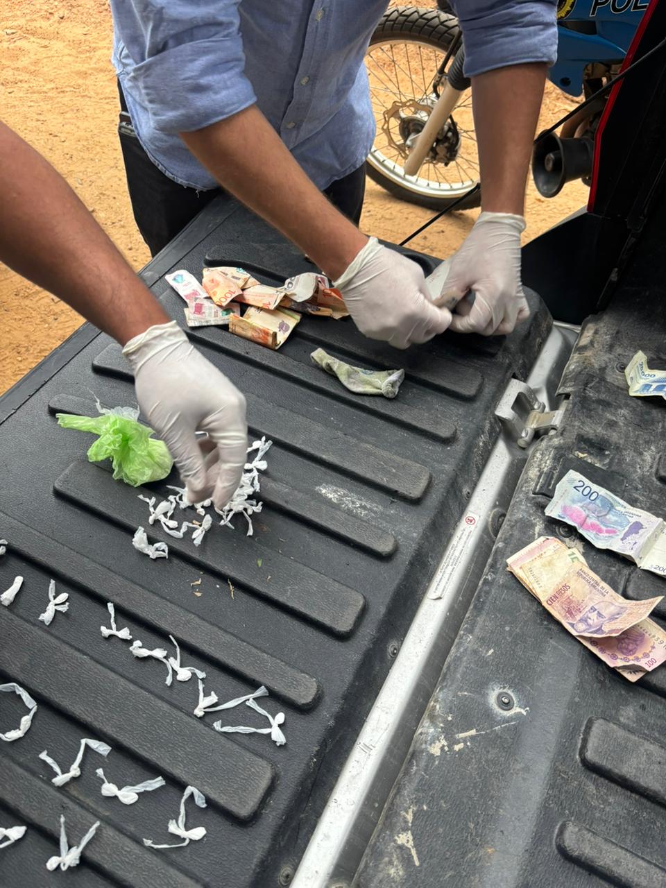 Se dio intervención a la División Drogas Peligrosas, realizándose el correspondiente test orientativo, el cual arrojó resultado positivo para clorhidrato de cocaína. Como resultado del procedimiento, se procedió al secuestro de 37 envoltorios, un envoltorio de mayor tamaño, la suma de $49.000 en efectivo, y la motocicleta en la que se desplazaba.