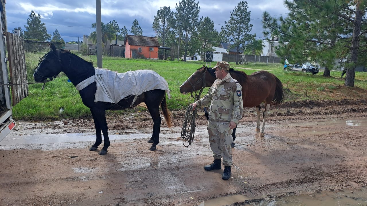 Este Miercoles por la mañana personal de Tránsito Municipal de Pueblo Belgrano, con la valiosa colaboración del personal policial de la «Brigada de Prevención Delitos Rurales» y Comisaria Quinta dependiente de JefaturaDepartamentalGualeguaychú, quienes utilizando un trailer perteneciente a la sección Montada, pudieron realizar el secuestro de Cuatro (04) equinos, que se encontraban sueltos en la vía pública como así tambien en el ejido urbano, dos de ellos se constataron en calle Santa Maria y posteriormente sobre calles Catalicio Sanchez y San Vicente se localizaron los otros dos animales.